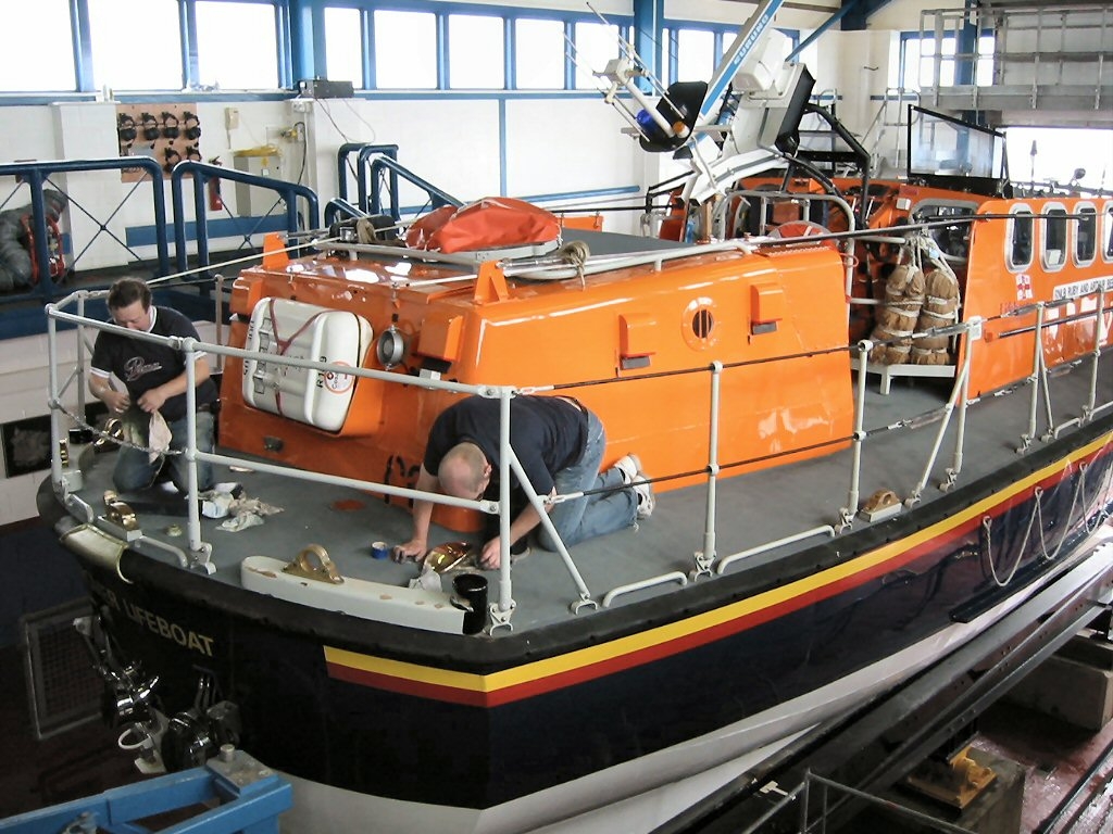 Cromer lifeboat being cleaned