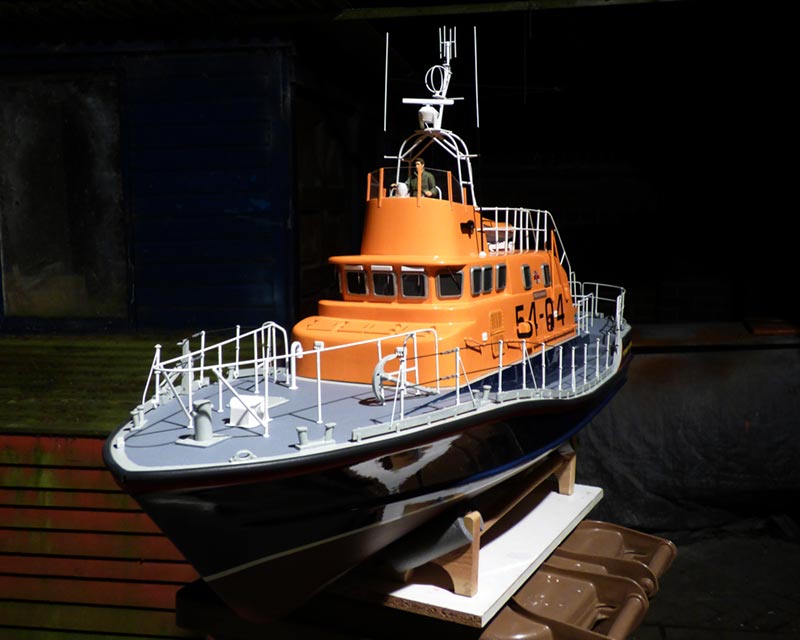 Finished conversion of a 52 ft Arun into a 54 ft Arun at 1/12th scale. Hull lengthened by 2" at the stern and a new superstructure to suit the RNLB Tony Vandervel