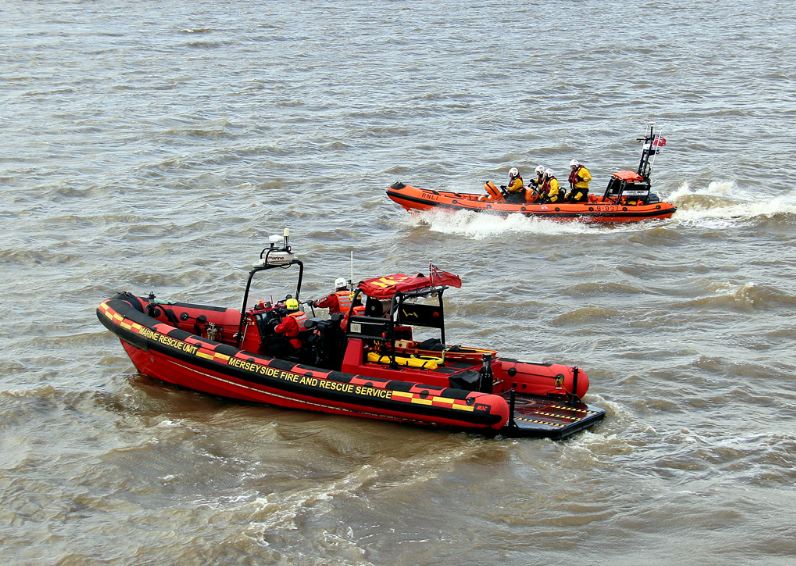 Marine Fire 1 and New Brighton Lifeboat